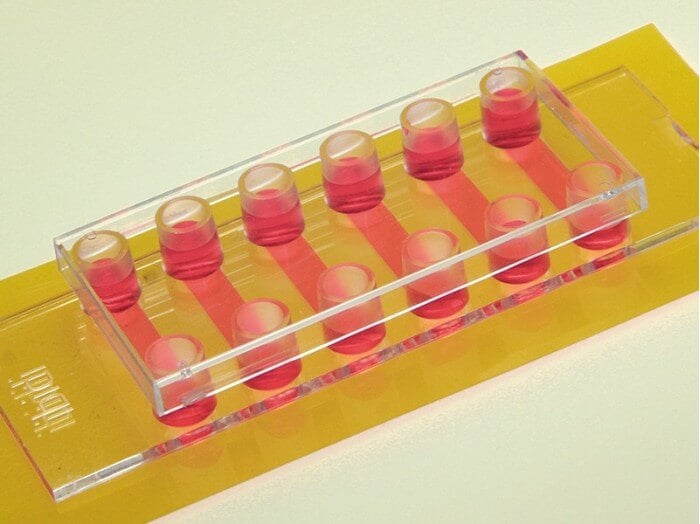 • 用于平行流體實驗和免疫熒光的六通道載玻片,僅使用少量的試劑和培養液即可完成實驗。